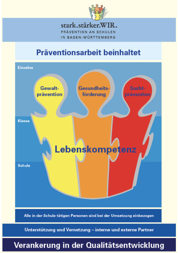 Das Rahmenkonzept stark.stärker.WIR. stellt die vielfältigen Aktivitäten im Bereich der Prävention und Gesundheitsförderung an Schulen in Baden-Württemberg in einen größeren Zusammenhang. Auf der Grundlage der Präventions- und Gesundheitsforschung schafft es Rahmenbedingungen und Strukturen und stellt Hilfen für eine gelingende Präventionsarbeit an Schulen im Land zur Verfügung.